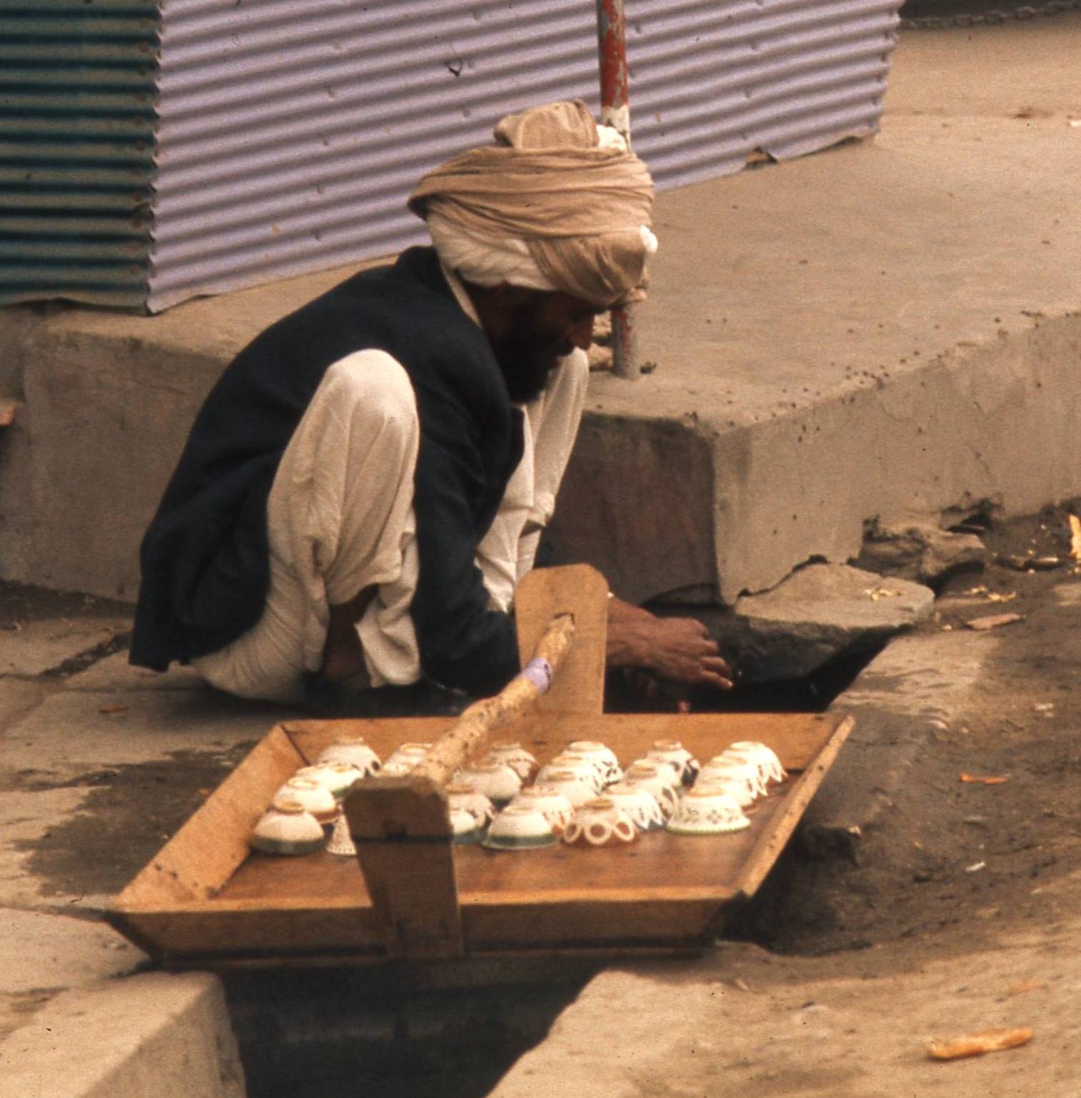 Notice ‘tea couch’ turned sideways against building