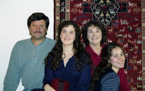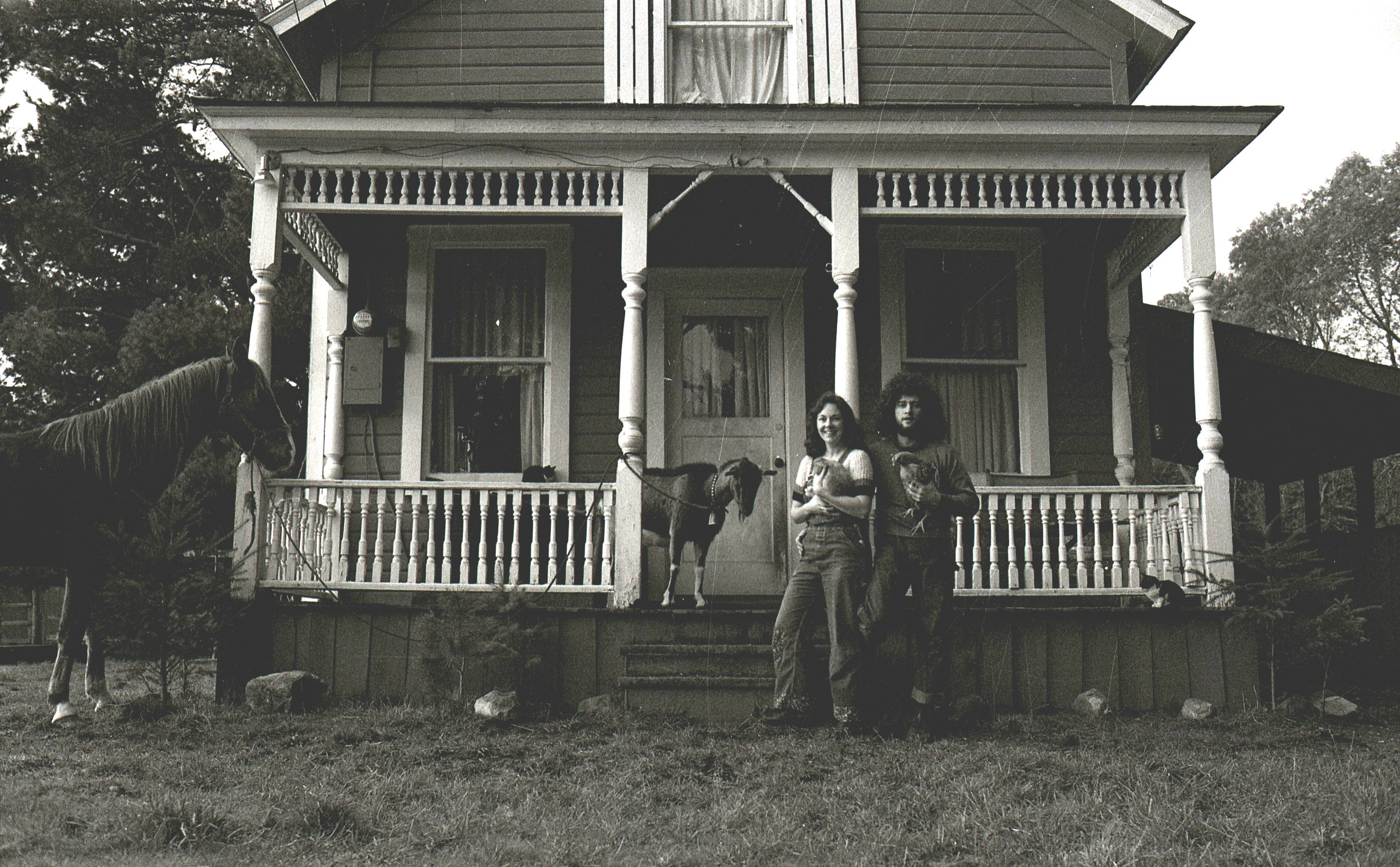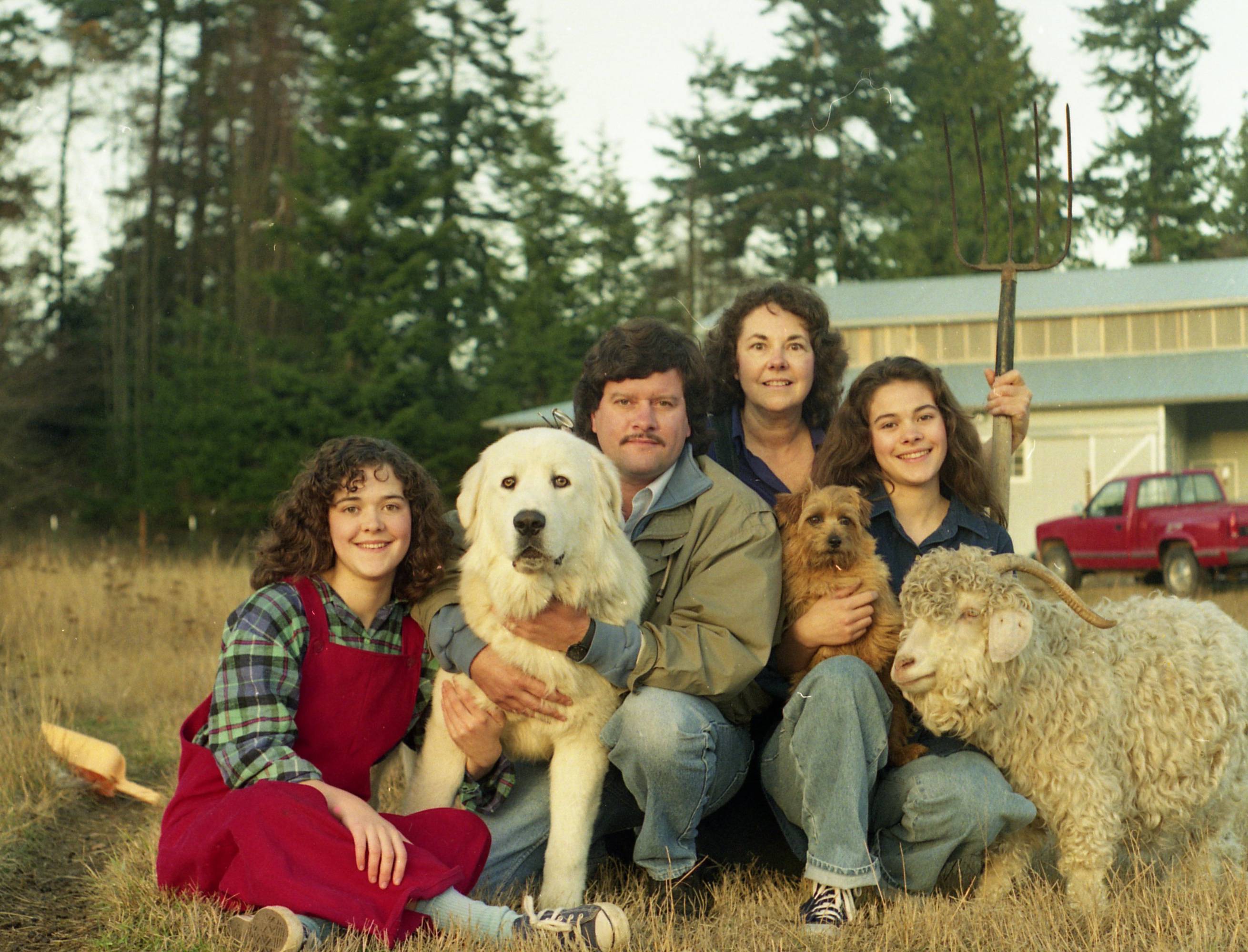 With our girls and part of our animals, Le Loup, Buttons, and Nillie the goat